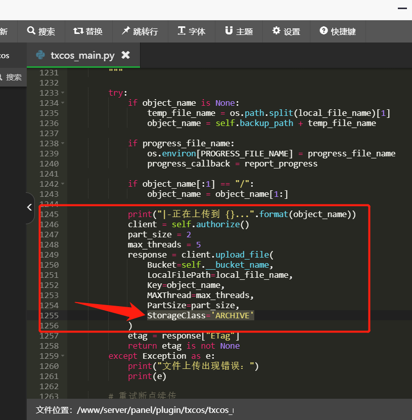 打开 /www/server/panel/plugin/txcos/txcos_main.py
