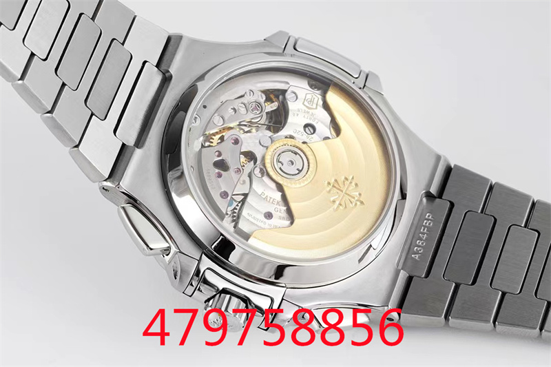 手表表带设计实现原人体工程学设计,使表带接口紧密也可弯曲灵活,佩戴舒适。配备了Nautilus折叠式双折叠表扣, 镌刻百达翡丽logo ,并配有翻盖锁,以提供额外的安全性。PPF厂自研百达翡丽计时机芯CH 28-520,由327个特别完成的零件,35个珠宝和13个桥组成。机芯在完全缠绕时以28,800vph的频率跳动时可提供超长的动力储备,机械美感通过蓝宝石背透后盖一览无遗。
