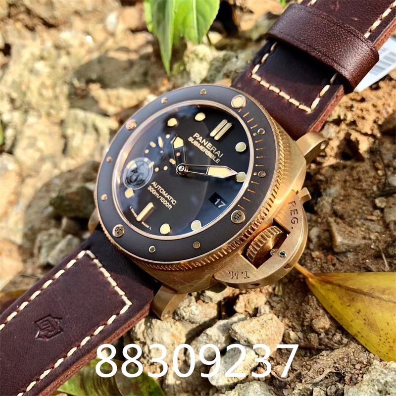 整体腕表与正版一致采用为47mm的表盘,适合手腕比较大的男士,当然这款腕表因为材质以及个头方面,让腕表有一种压手感,这也符合了硬汉神器的称谓,镜面采用蓝宝石镜面,在后期使用过程中,不会容易出现刮痕!表针推出了全新更具有力量的新设计替代了经典的阿拉伯数字刻度以及传统时、分指针的样式。!VS厂沛纳海PAM968复刻手表表壳悉数采用了青铜材质,视觉上会带来一种起来沧桑复古的感觉。青铜材质最好的地方是会氧化这个特色,通过时间的洗礼会不断氧化,形成独树一帜的表壳纹理!青铜材质会随着时间氧化,而这氧化有会收到温度湿度环境的因数影响,让每一款青铜腕表都是独一无二的存在!这就是青铜材质腕表的魅力!表盘做工也是无可挑剔的,整款表盘都采用了棕色色彩填充,再调配青铜色泽的时标、字体、指针和整款腕表完美符合,夜光粉填充也没有任何的溢出现象。腕表最大的亮点,便是第一次使用嵌入棕色陶瓷的表圈,看上去比382更加有收藏价值和可玩性。 陶瓷表圈经过轻微的喷砂处理,可以逆时针旋转,圈口上镌刻有15、30、45刻度,圈口处有凸起的小圆环。12点位处镶嵌一颗夜明珠,与青铜表圈形成鲜明的对比。右侧强大护桥也是十分霸气,也为全体腕表增加了腕表的辨识度!当然对于护桥也能保护好调试把头!做工同样精细,英文字母的大小,蚀刻的深浅还有银色钉的位置全部跟原装一致。右侧护桥的做工同样精细,英文字母的大小,蚀刻的深浅还有银色钉的位置全部跟原装一致。